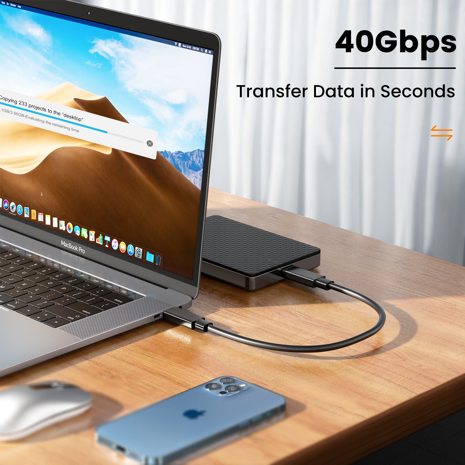 Transfer Speed: Supports data transfer up to 40 Gbps